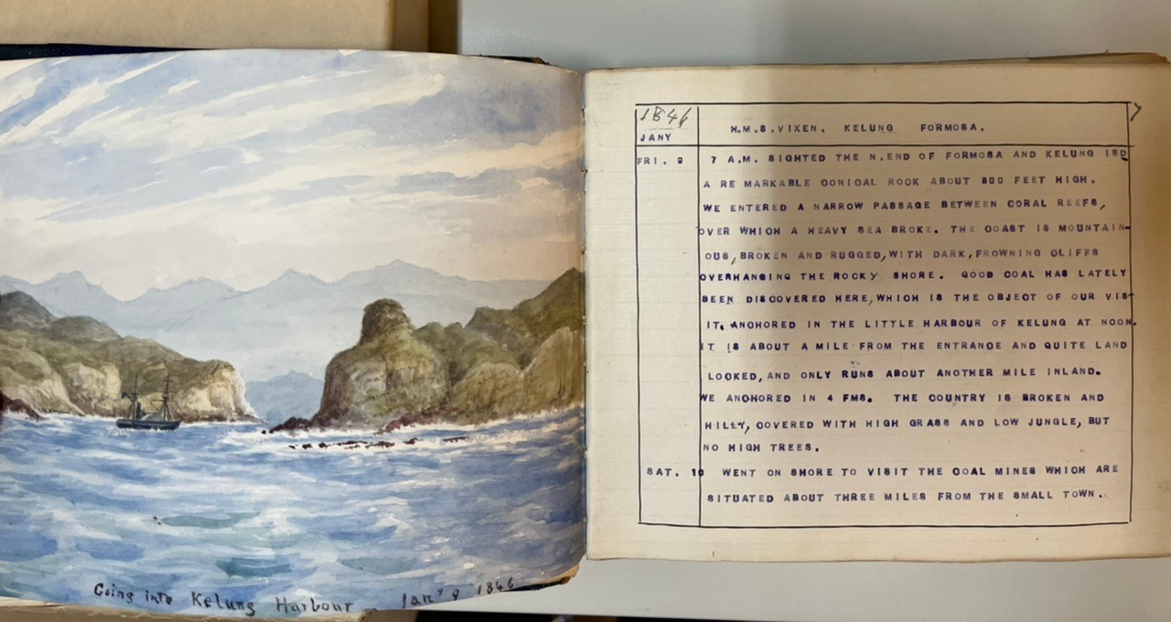 ▲克里1846年1月9日及1月10日記載基隆煤礦探勘行程的日記和手繪插圖(局部)。/source:英國國家海事博物館(National Maritime Museum)典藏|授權