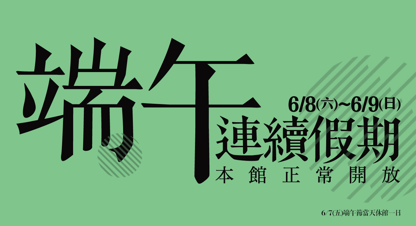 2019 年端午節連休假日期間,本館 6/7(五)休館一日;6/8(六)~ 6/9(日)正常開館。歡迎蒞臨參訪!由於連假人潮眾多,周邊停車場容易爆滿,建議搭乘大眾交通工具前來!