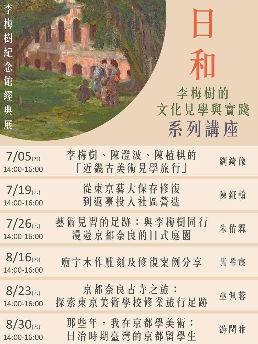 經典展系列講座 講題|藝術見習的足跡:與李梅樹同行,漫遊京都奈良的日式庭園